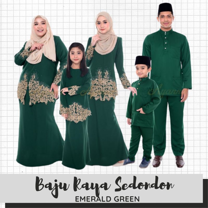 In Stock Baju Raya Sedondon Tema Warna Emerald Green Hijau Set Family Ayah Ibu Anak Baju Kurung Baju Melayu Kurta A Shopee Malaysia